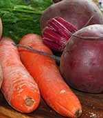 - Свеклу и морковь вымыть и приготовить на пару до готовности.