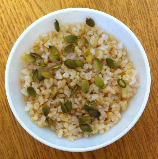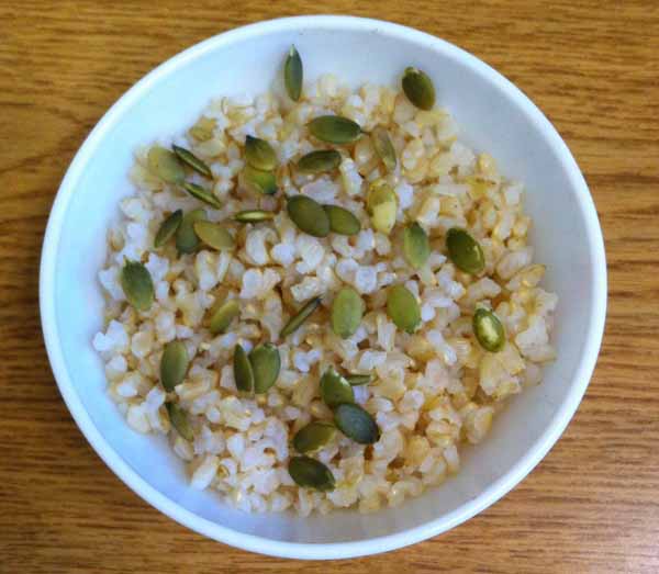 - Готовый рис посыпать тыквенными семечками.