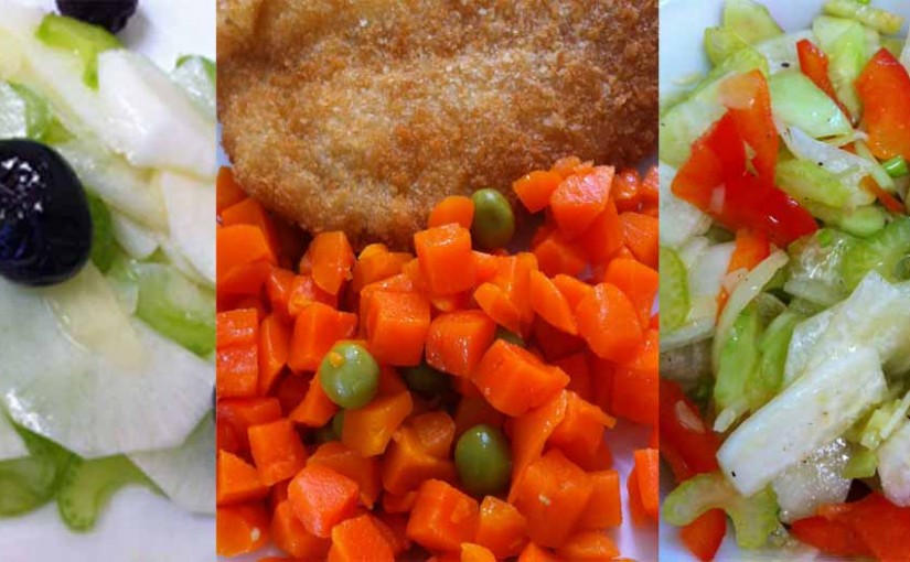 1. Рыба жаренная с отварной морковью и зеленым горошком.