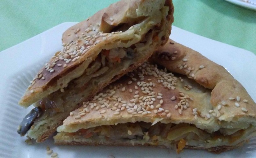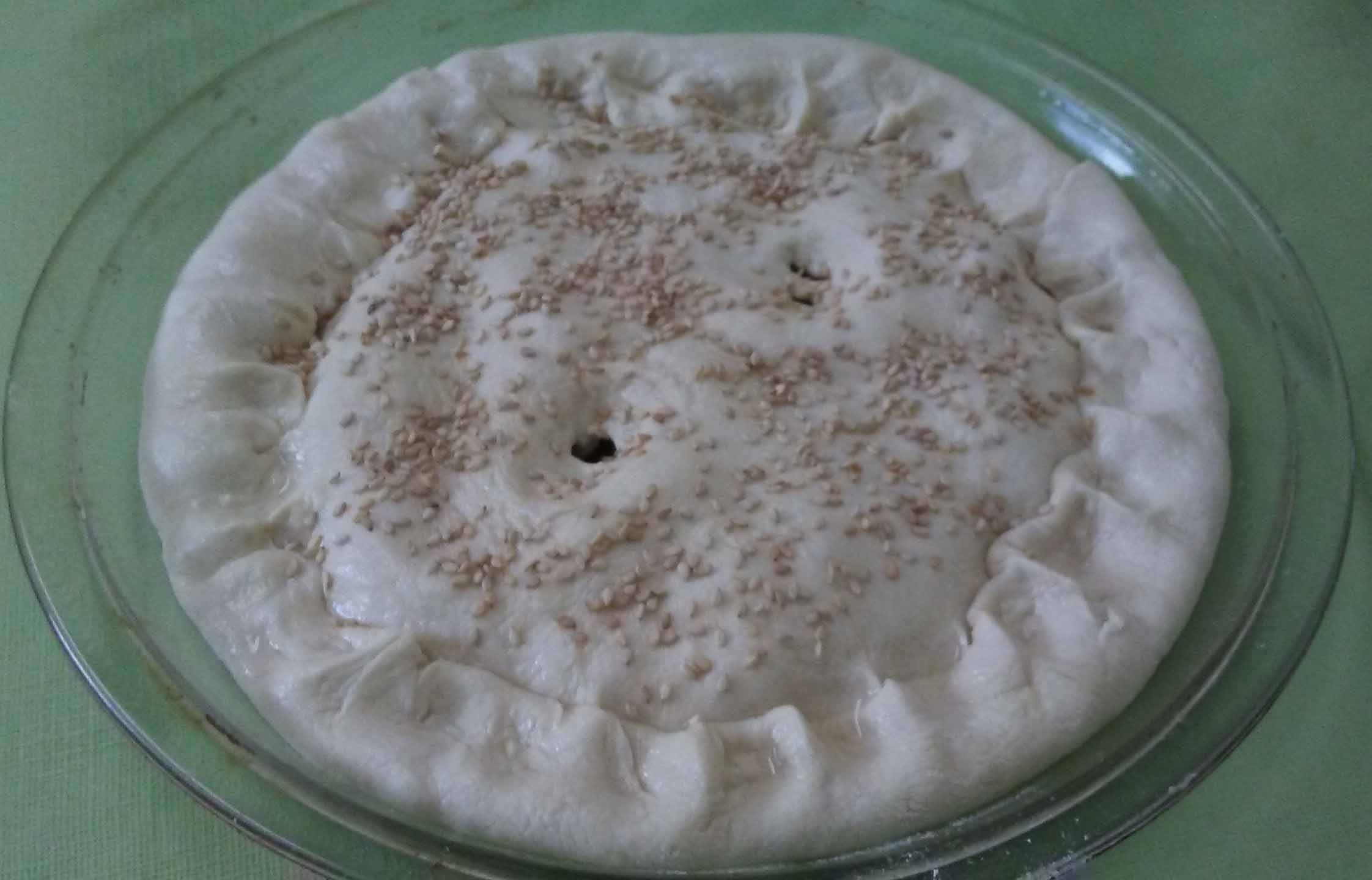 6. Смазать пирог растительным маслом и посыпать семенем кунжута.