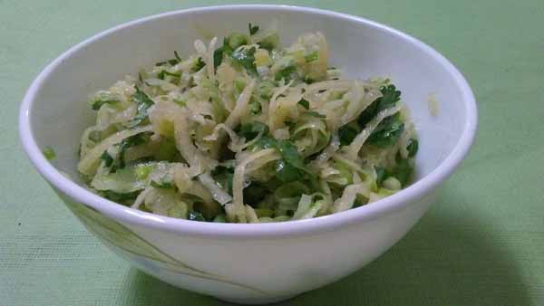 Салат из репы (турнепса, брюквы), с сельдереем и зеленым луком.