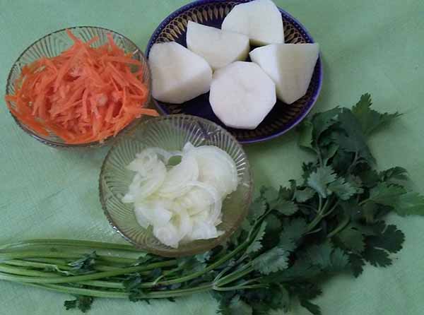Салат из репы (турнепса, брюквы), с сельдереем и зеленым луком.
