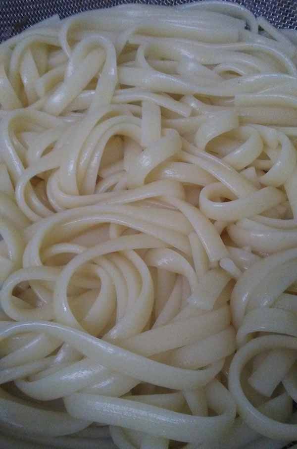 1. Лапшу Фетучини, отварить в большом количестве соленой воды, слить воду.