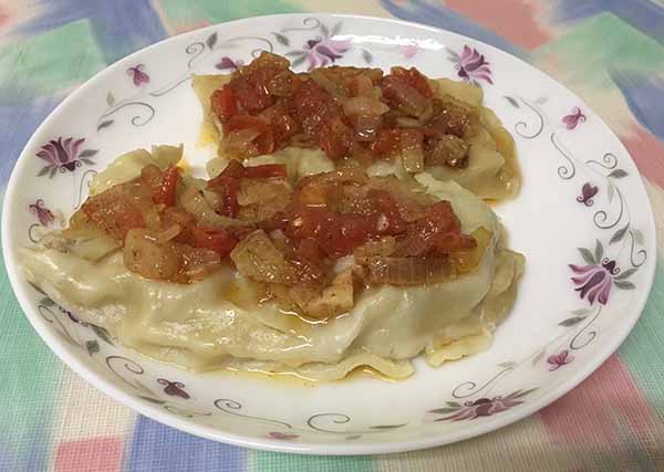 Совет. Можно приготовить такой ханум с мясной, картофельной или грибной начинкой. Подавать с томатным соусом, сметаной, катыком, йогуртом или сливочным маслом.
