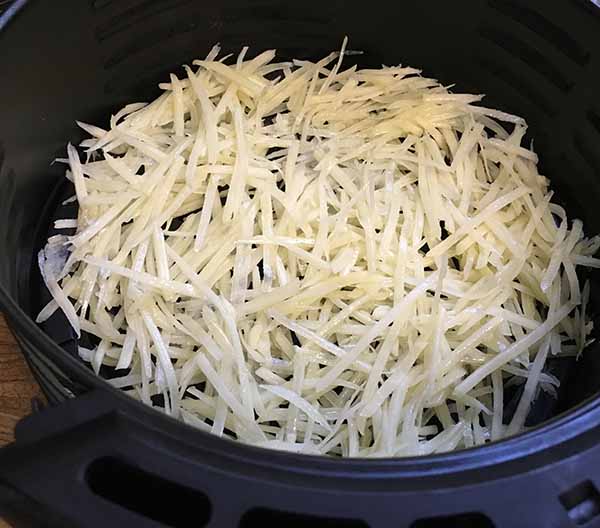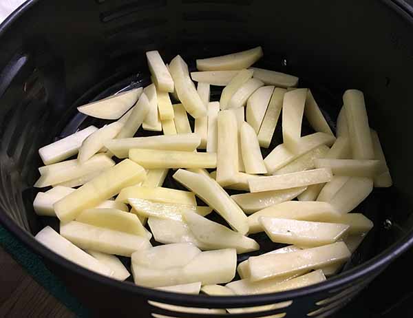 5. Выставить таймер на 15 минут, сложить картофель в прогретую чашу аэрогриля.Трапеза: картофель фри в аэрогриле на корейской терке