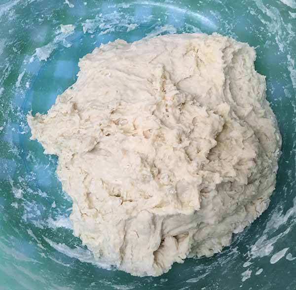 Дрожжевое тесто4. Замесить мягкое тесто, добавляя муку постепенно. Замешивайте, смазывая руки растительным маслом, чтобы не прилипало. Тесто должно быть очень нежное и мягкое,