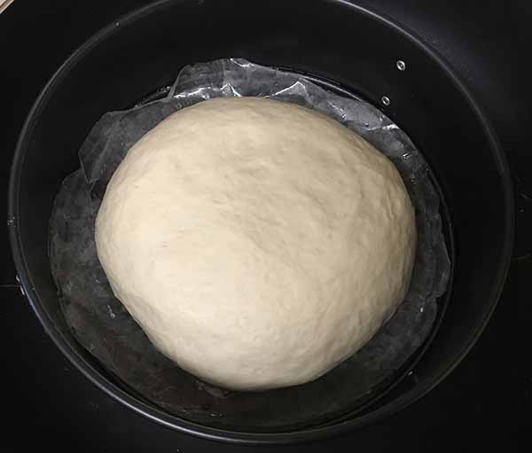 Дрожжевое тесто5. Скатать его в шар. Выложить тесто в форму, смазанную маслом или покрытую пекарской бумагой.Прикрыть полотенцем и оставить для подъема в теплом месте, на 1 час.