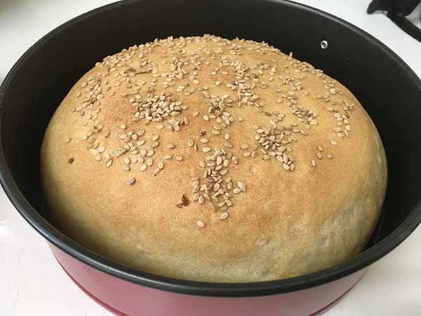 Затем уменьшить огонь до 180 градусов и выпекать хлеб еще минут 10-15, не открывая духовку до золотистой корочки.