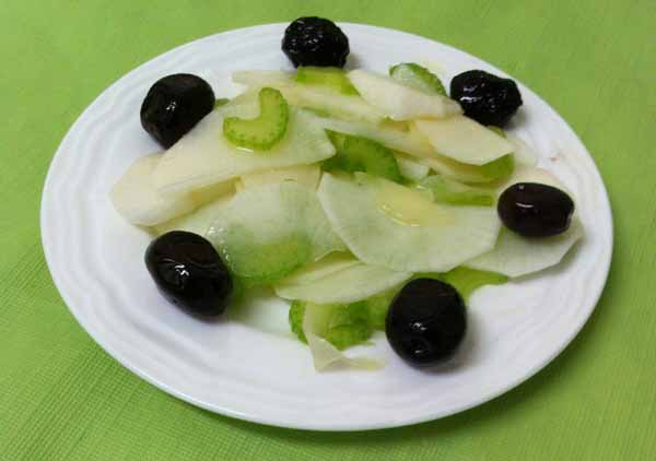 - Сельдерей – нарезать тонкими пластинами.